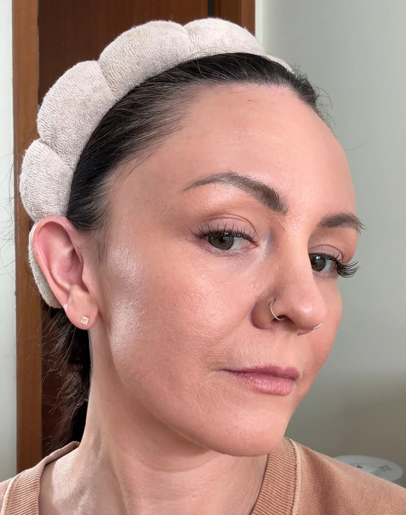 "I love that it feels like a light lotion and soaks into the skin. I don't like the feeling of foundation and this feels like nothing at all. Best of all it is so fast to put on and because it self tints you don't have to be super careful. I just slap it on like moisturizer and set with a little pressed powder."